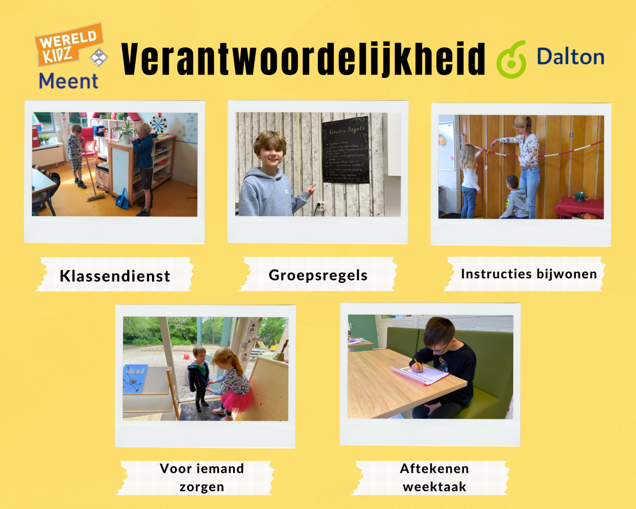 WereldKidz Meent is een Daltonschool. Onze onderwijs heeft als belangrijkste kenmerk dat kinderen, naast goed onderwijs, op een gestructureerde wijze leren samenwerken en verantwoordelijkheid nemen voor hun eigen leren maar ook verantwoordelijkheid nemen voor het welzijn van andere kinderen en hun leeromgeving. Als school zijn we lid van de Nederlandse Daltonvereniging en hebben we het Daltonpredicaat. De groepsleraren hebben allemaal een Daltoncertificaat of volgen een cursus daarvoor. Wilt u meer weten over ons Daltononderwijs, leest u hier dan verder……